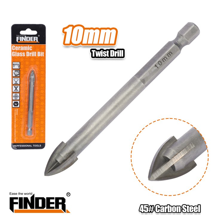 Τρυπάνι τετράκοπο γυαλιού και πλακιδίων της Finder, κατασκευασμένο από ατσάλι #45 Carbon Steel. Μέγεθος: 10mm.