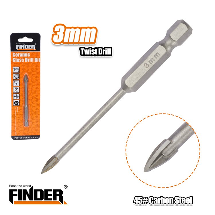 Τρυπάνι τετράκοπο γυαλιού και πλακιδίων της Finder, κατασκευασμένο από ατσάλι #45 Carbon Steel. Μέγεθος: 3mm.