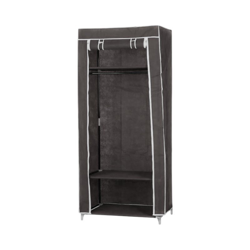 Υφασμάτινη ντουλάπα με ράφια, κατάλληλη για παπούτσια, ρούχα, λευκά είδη και οτιδήποτε επιθυμείτε να αποθηκεύσετε. Εύκολα συναρμολογούμενη, με στιβαρή κατασκευή με μεταλλικό σκελετό και ανθεκτικό ύφασμα non-woven που αντιστέκεται στην υγρασία και τη σκόνη. Το μπροστινό μέρος ανοίγει με φερμουάρ και τυλίγεται σε ρολό το οποίο στηρίζεται με ταινίες velcro για εύκολη πρόσβαση. Ιδανική για το σπίτι, το εξοχικό ή την αποθήκη σας.