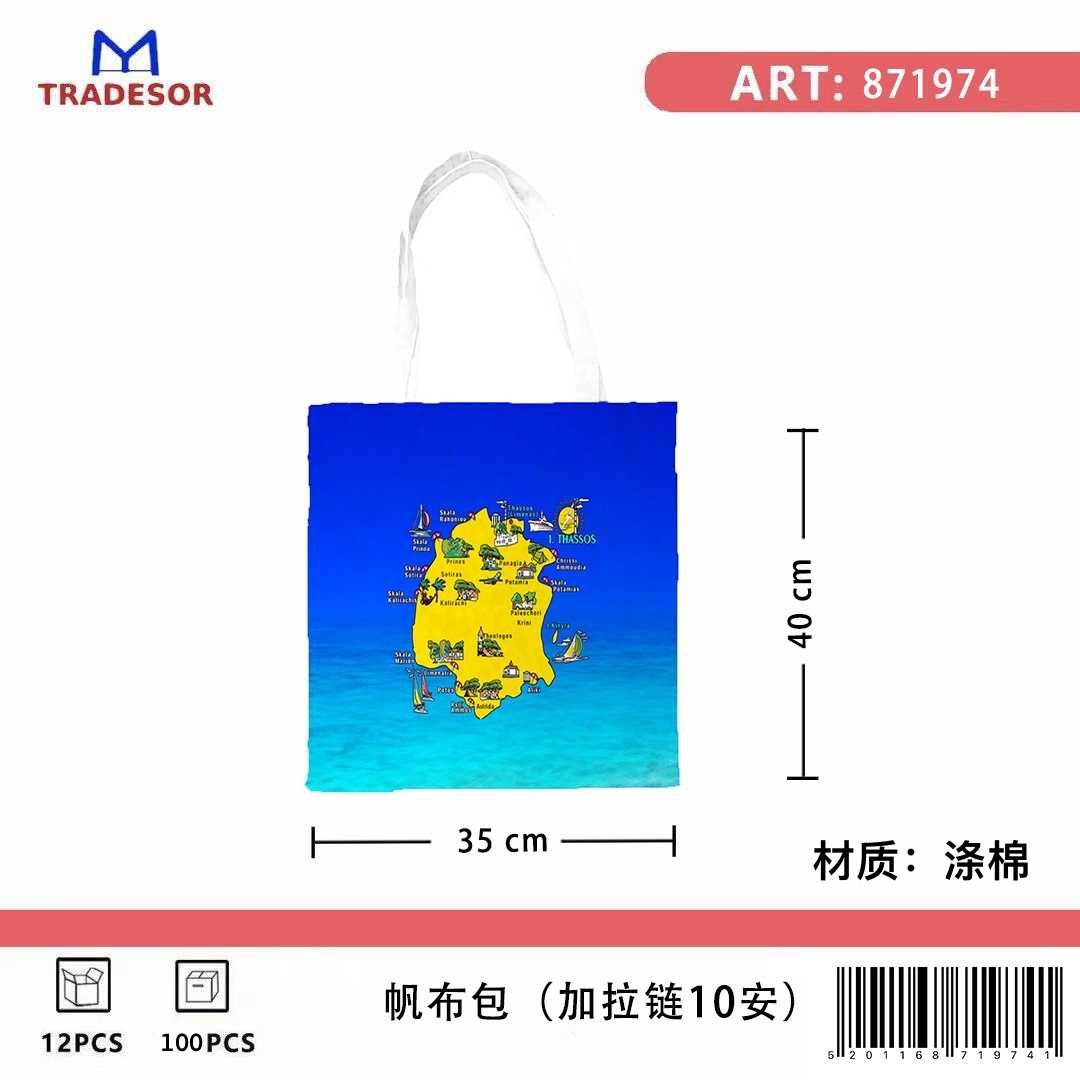 Υφασμάτινη τουριστική τσάντα καμβάς με φερμουάρ – Thassos – 35*40cm – 871974