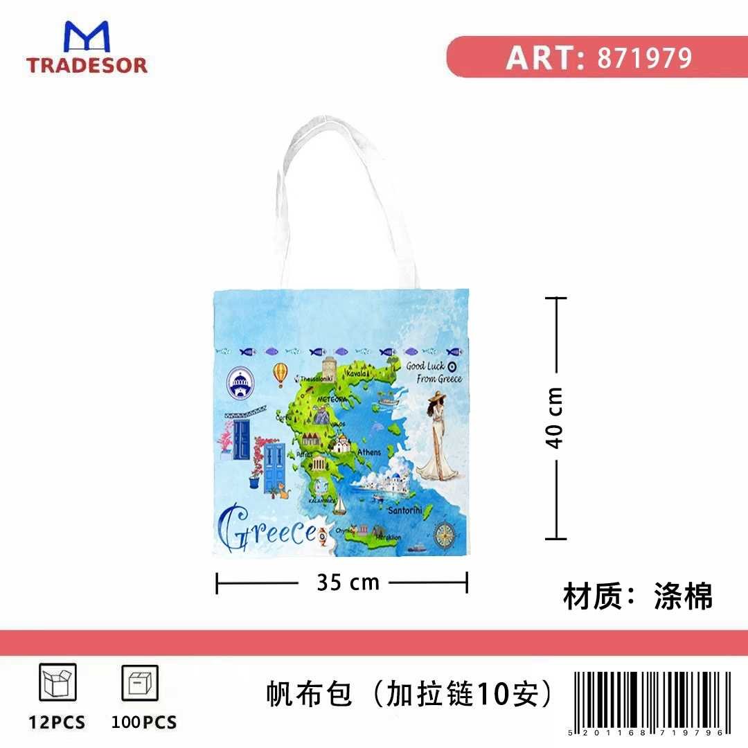 Υφασμάτινη τουριστική τσάντα καμβάς με φερμουάρ – Greece – 35*40cm – 871979