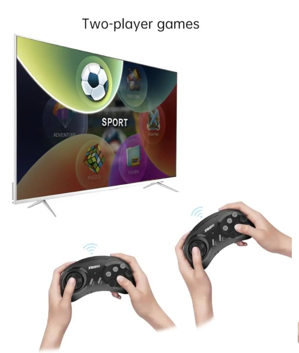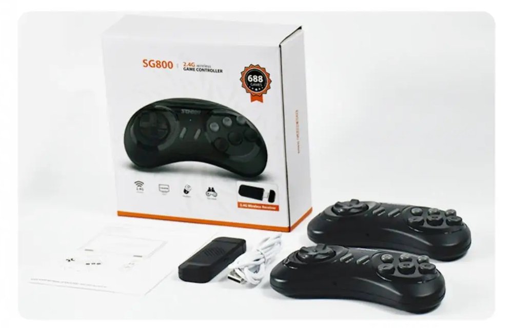 Ασύρματη κονσόλα παιχνιδιών με HDMI Stick και δύο ασύρματα χειριστήρια.