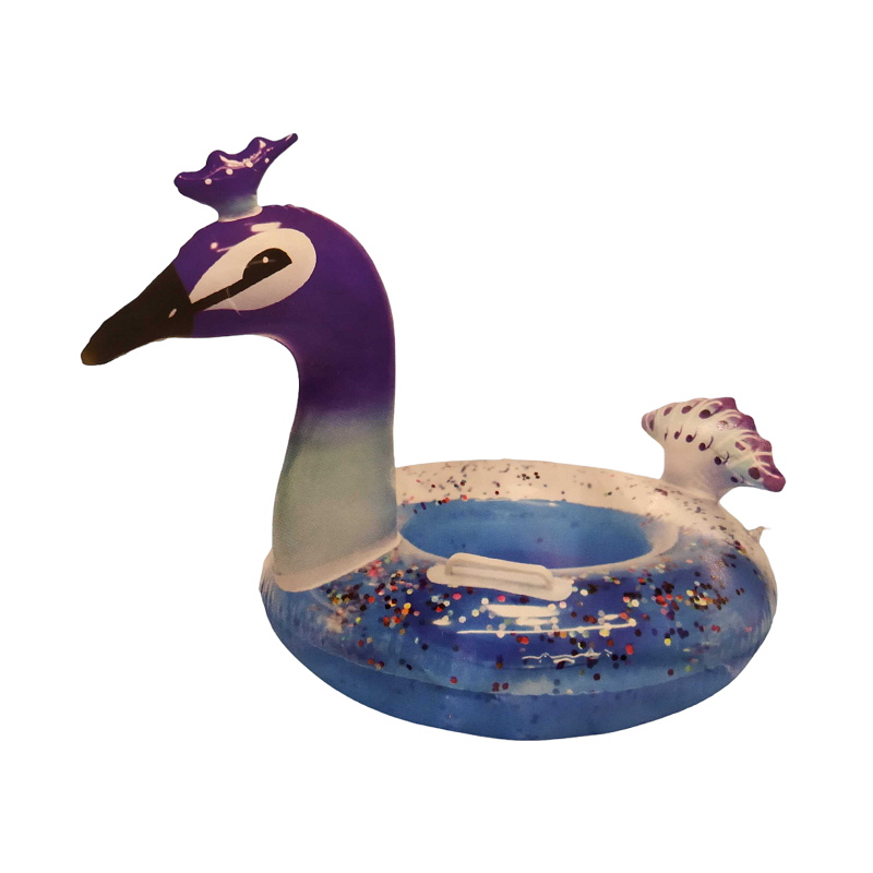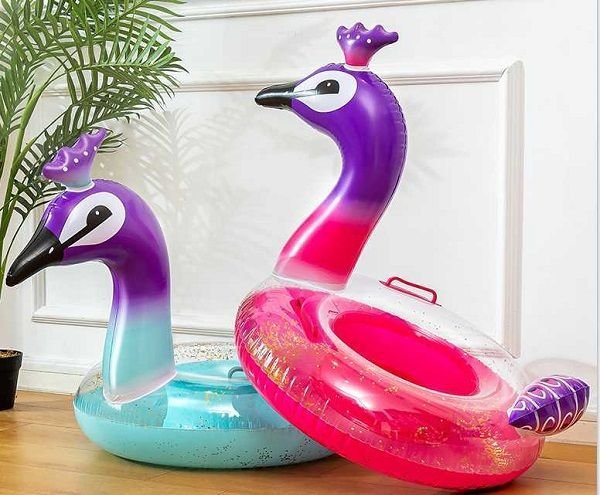 Φουσκωτό σωσίβιο θαλάσσης παγώνι με χρυσόσκονη στο εσωτερικό, από μαλακό και ανθεκτικό PVC, μη τοξικό, με βαλβίδες ασφαλείας.