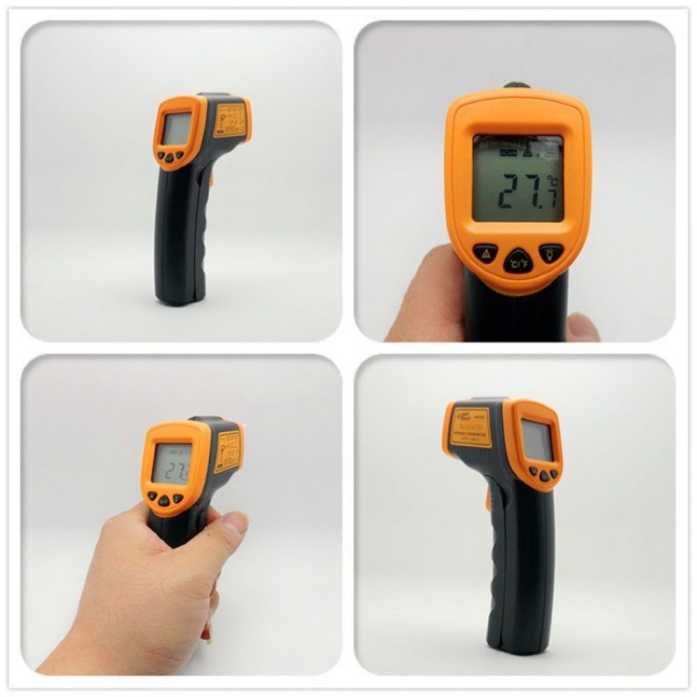 Ανέπαφό θερμόμετρο υπερύθρων χειρός με ψηφιακή φωτιζόμενη οθόνη ενδείξεων και εργονομικό ελαφρύ σχεδιασμό.