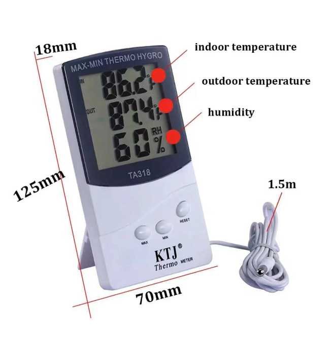 Ψηφιακό θερμόμετρο/υγρόμετρο δωματίου με μεγάλη ευανάγνωστη οθόνη LCD.
